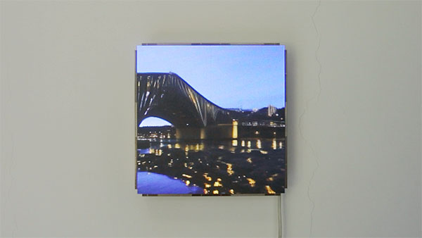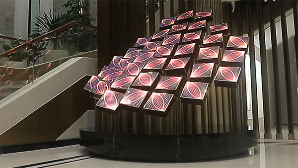 Generative art, LED panel module, acrylic, wood 230 x 230 x 230 cm